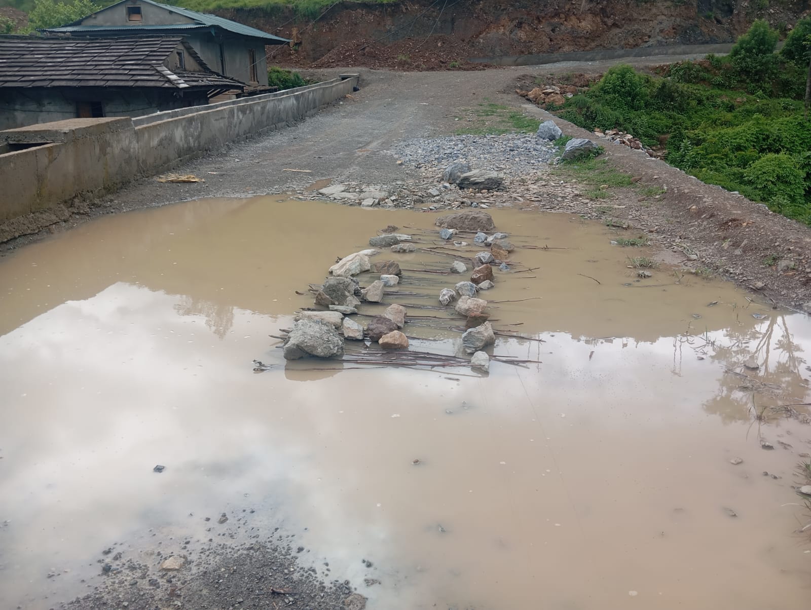 स्थानीय बासिन्दाहरू बाध्य छन् ।तालजस्तो सडक पार गर्न कै लागि भिमलको डाँठ भिजाएर बाटो निकाल्न। भिमलको डाँठ, जसको सामान्यतया प्रयोग गाई–गोरु बाँध्न दाम्लो बनाउने वा रसी बनाउन गरिन्छ, अब सडक छिचोल्ने ‘पुल’ बनेको छ। यो दृश्य आफैँमा विकास विरोधी विडम्बना हो।