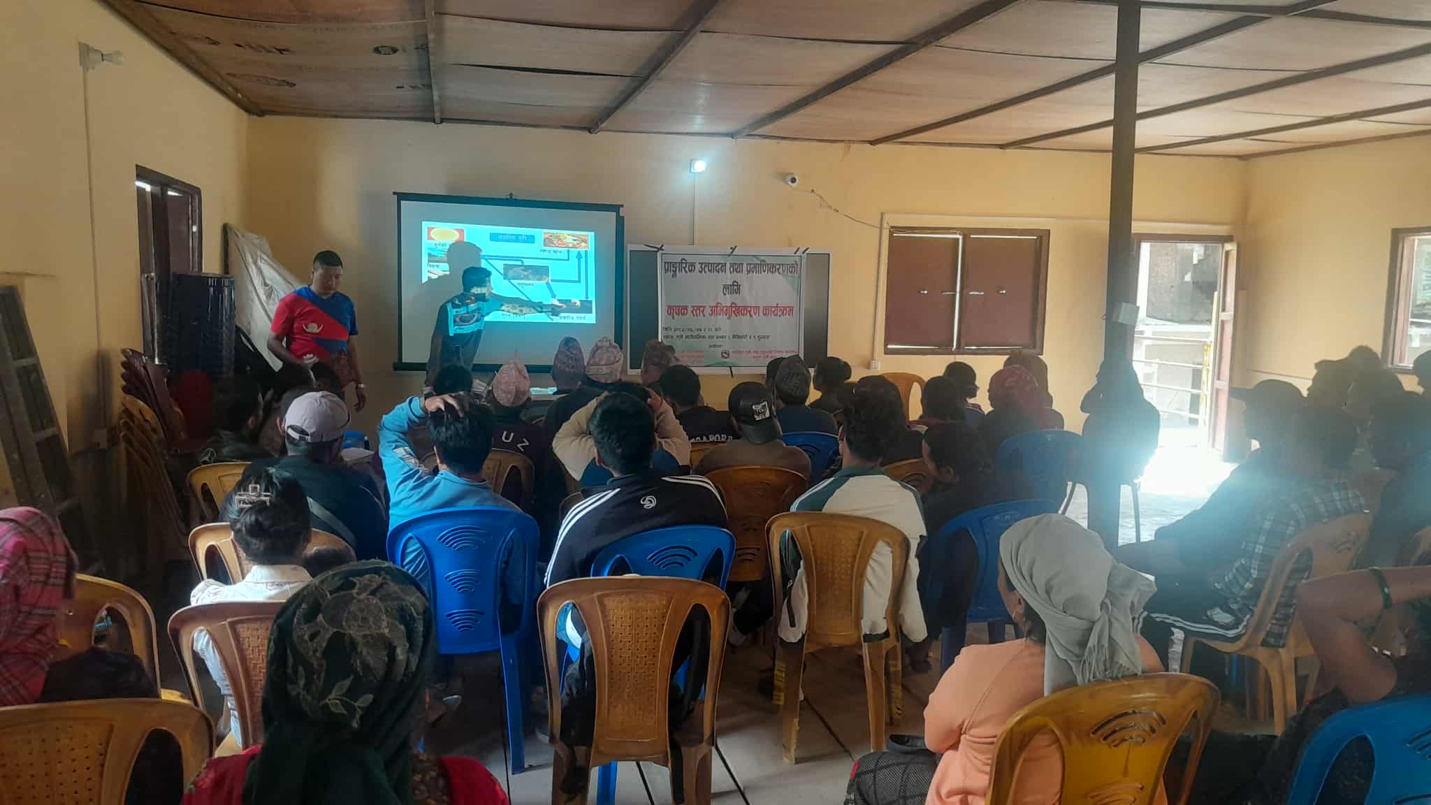 भैसिलोटेमा भएको कार्यक्रममा कृषि अधिकृत थल बहादुर बस्नेतले सञ्चालन गर्नुभएको थियो भने प्रमुख डिल्लीराज पौडेलले किसानका समस्या समाधान गर्ने उपायसहित प्राङ्गारिक उत्पादन र प्रमाणिकरणका विभिन्न पक्षमा मार्गदर्शन गर्ने बताउनुभएकाे छ।